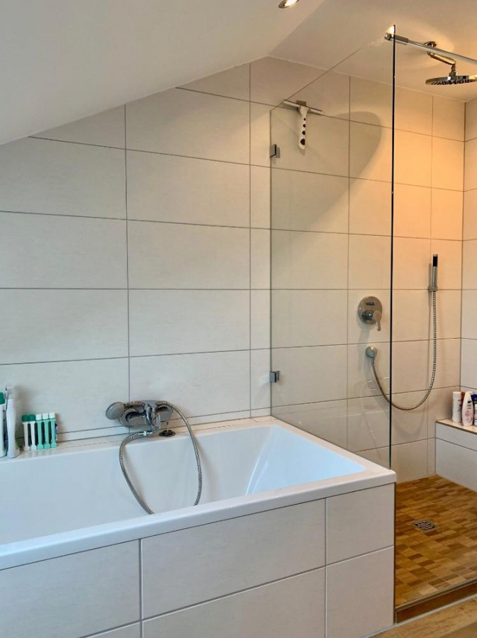 - stylisch, modernes Bad mit Wanne und Walk-in-Dusche